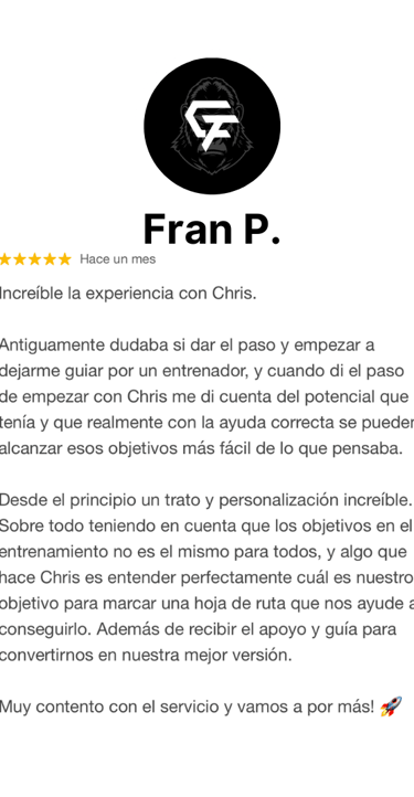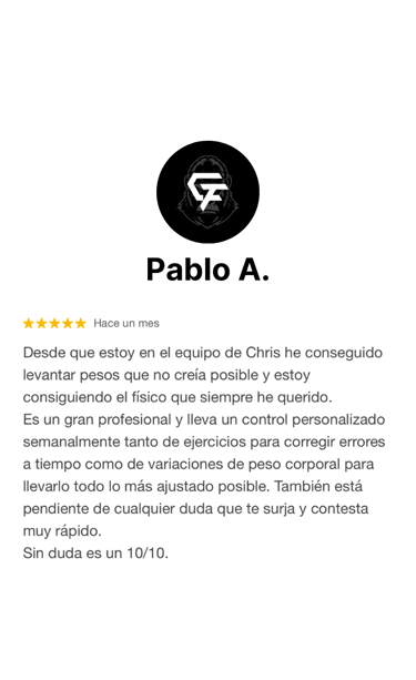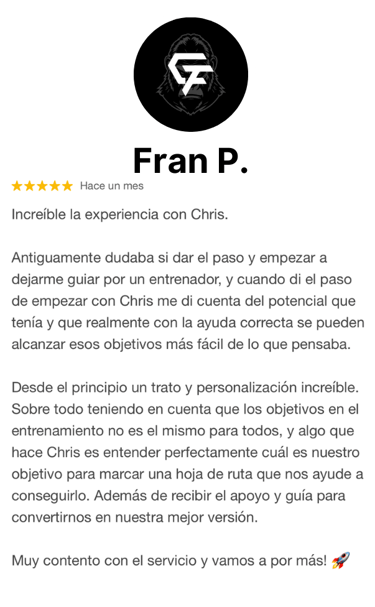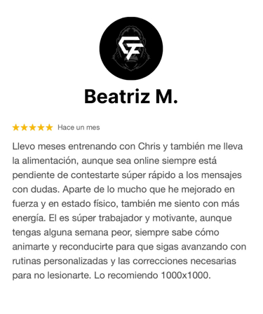 Porque vas a tener soporte 24 horas 7 días a la semana, algo que un entrenador presencial no te ofrece. Puedes mandarnos vídeos de tus ejercicios siempre que quieras. Puedes preguntarnos dudas siempre que necesites.