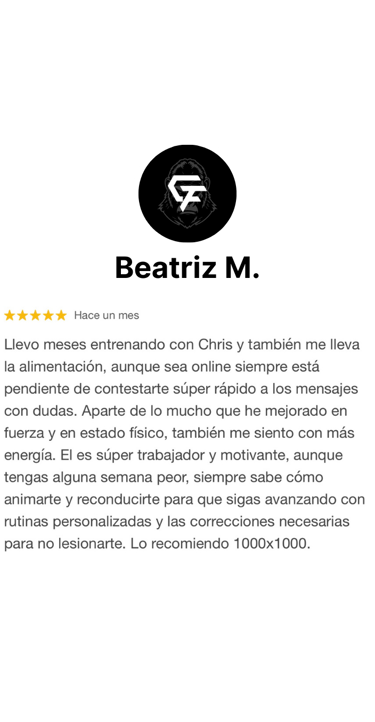 Es una experiencia completamente personalizada. Para nosotros se trata de crear una relación con todas nuestras clientas para ayudarles en cada paso del camino hacia el logro de sus objetivos. Cuando te unas a nuestro equipo, obtendrás acceso a planes de alimentación y entrenamiento totalmente personalizados, un proceso de registro para garantizar que estás avanzando hacia tus objetivos y un chat directo con nosotros para ayudarte en cada paso de tu viaje.
